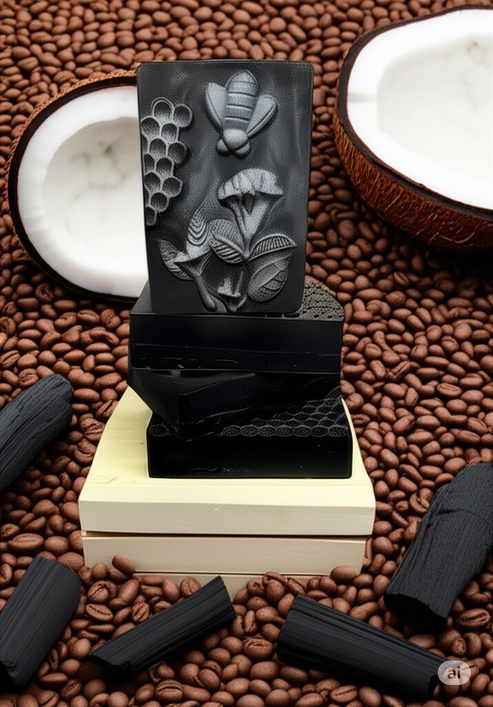Jabón de Glicerina Antiacné,anticelulítico , exfoliante e hidratante de Café , Carbón Activo y manteca de coco ,totalmente hechos a mano .